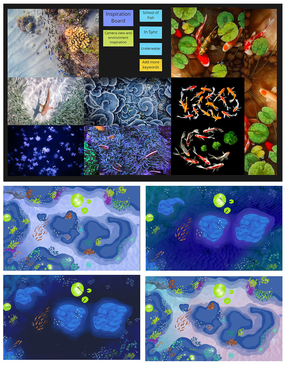 1. School of fish moves straight till the player touches the screen.